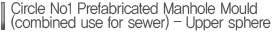 In production, in order to minimize the vertical sphere which can not avoid a little time-consuming, this was designed and produced the height-adjustable upper sphere (H~0m/mºÎÅÍ H~1000m/m) in a mass-produced method and enhanced productivity, and also reduced the assembly parts when assembling manholes on site (the integration of upper slab and each height sphere), which reduced construction time and equipment, and water leakage, while the connecting assembly parts (female socket) undergo ductile casting and turning precision processing